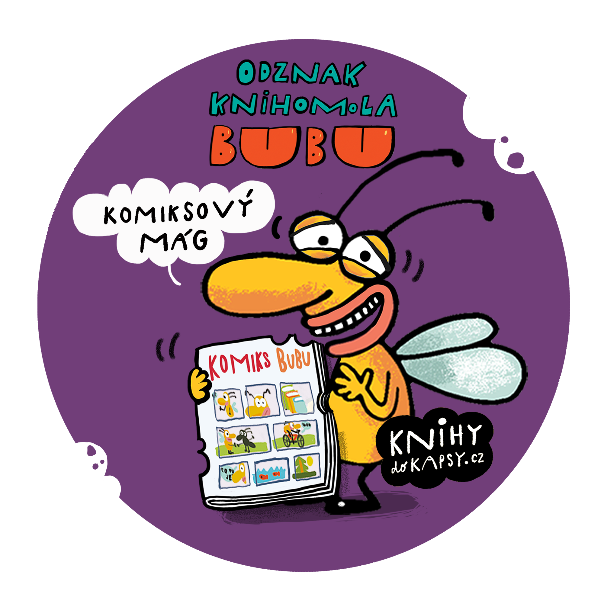 tady je Tvůj sběratelský knihožroutský odznak a jídelní lístek knihomola Bubu. 🙂